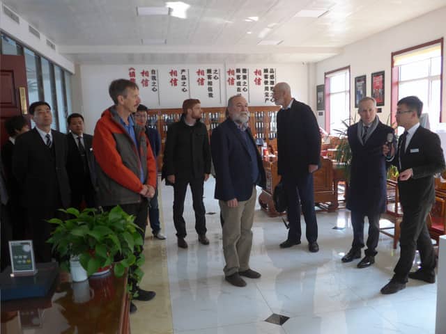3月1日,澳大利亞TRACC公司一行9人到天意機(jī)械、經(jīng)典集團(tuán)考察洽談。天意機(jī)械董事長(zhǎng)劉洪彬,經(jīng)典集團(tuán)董事長(zhǎng)苗樹(shù)文,國(guó)際貿(mào)易部負(fù)責(zé)人董偉、劉春剛等熱情接待了來(lái)訪(fǎng)的外賓。