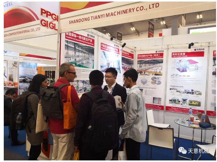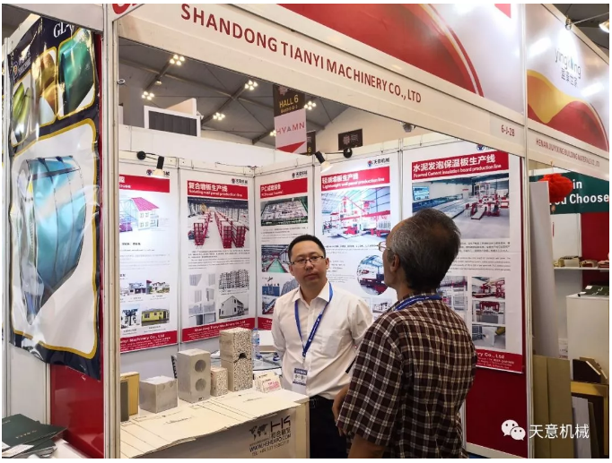 展會期間,天意機械展現了多款適用其本地市場的綠色建筑建材裝備,一經亮相就吸了眾多客商的眼球,前來咨詢了解者絡繹不絕,天意國際銷售經理為客商細心介紹天意裝備的優(yōu)勢,并得了眾多客商好評。